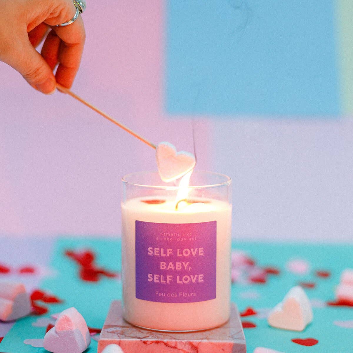 Every day is valentine, get lit this valentine by giving a candle C’mon baby light my fire smells like a hot night of watching netflix Available in 2 fragrances: Fauna & Flora: top notes: citrus fruits, pear middle note: lavender, Jasmine base notes: amber, sandalwood, musk and vanilla Time Travel: top notes: lemon, mint, cognac middle notes: jasmine, oak wood, vetiver base notes: oak, tobacco, musk product info : weight: 50g - diameter: 4,5 cm - height: 5 cm - burn time 12/15 hours - no box