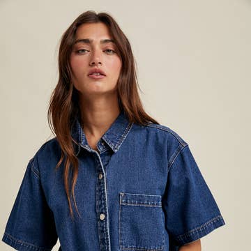 BOXY DENIM BUTTON-UP SHIRT / WL25-10282