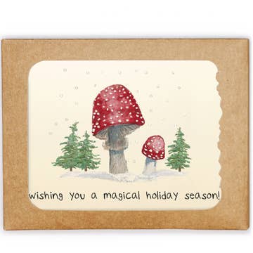 Merry Chrismush Mushroom Holiday Greeting Card