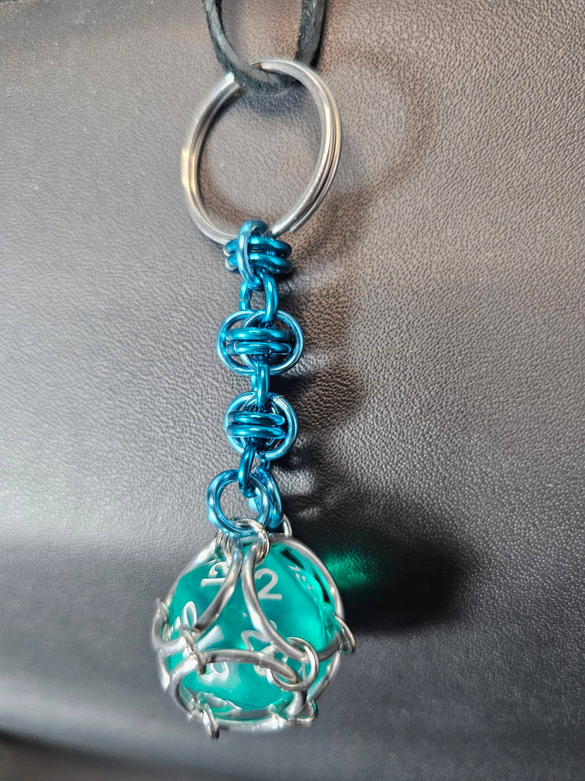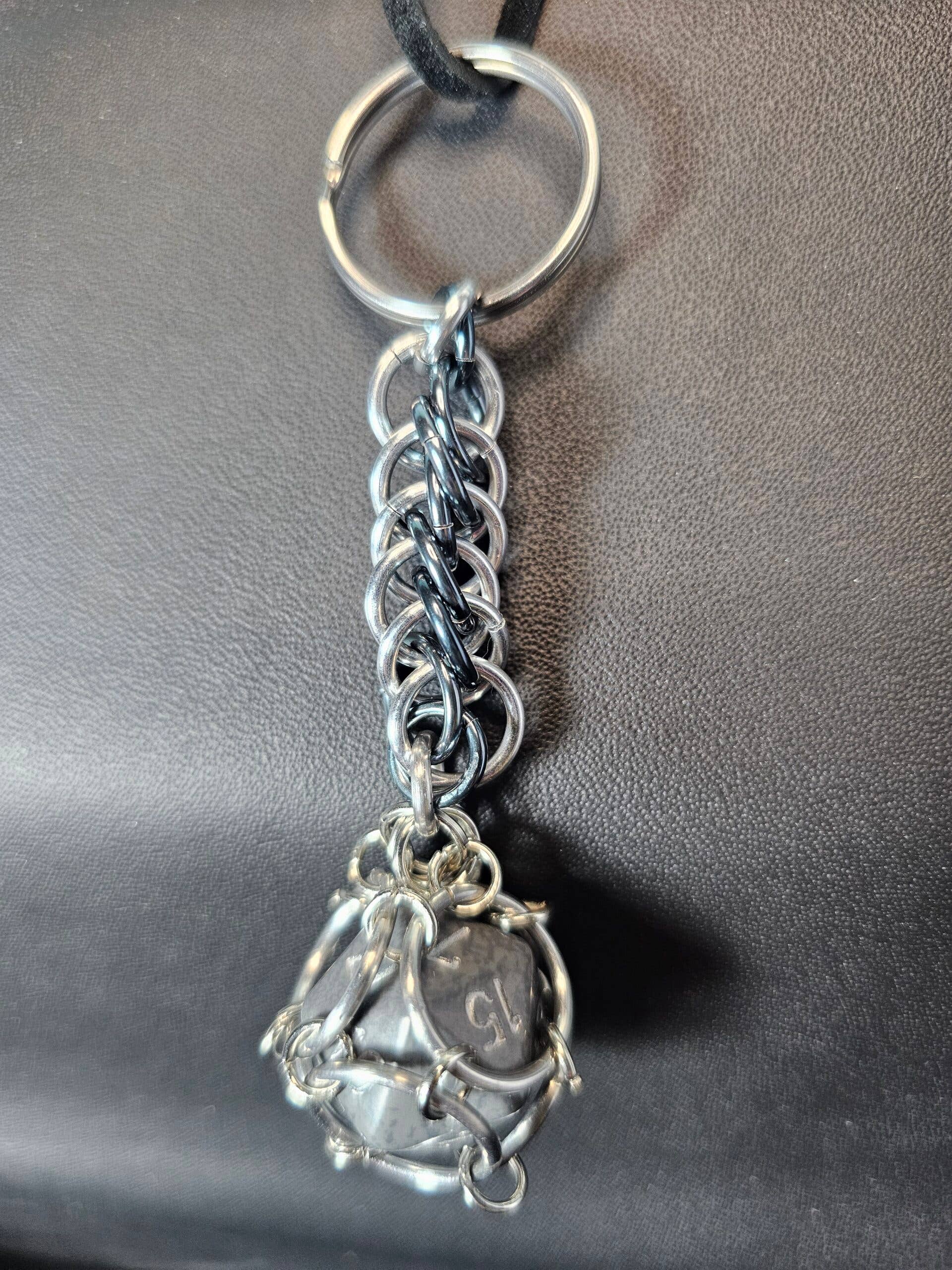 Ideal for gamers, collectors, and anyone looking to add a touch of fantasy to their everyday carry, the Trapped D20 Keychain Byzantine is both a functional item and a conversation starter. The Trapped D20 Keychain features a 20-sided die (D20) encased within a sturdy chainmail weave, giving it the appearance of being “trapped.” This keychain is both functional and decorative, making it perfect for tabletop gamers who want to carry a piece of their gaming world wherever they go. The intricate chainmail provides a secure yet stylish holder for the die, blending medieval-inspired craftsmanship with modern gaming charm.