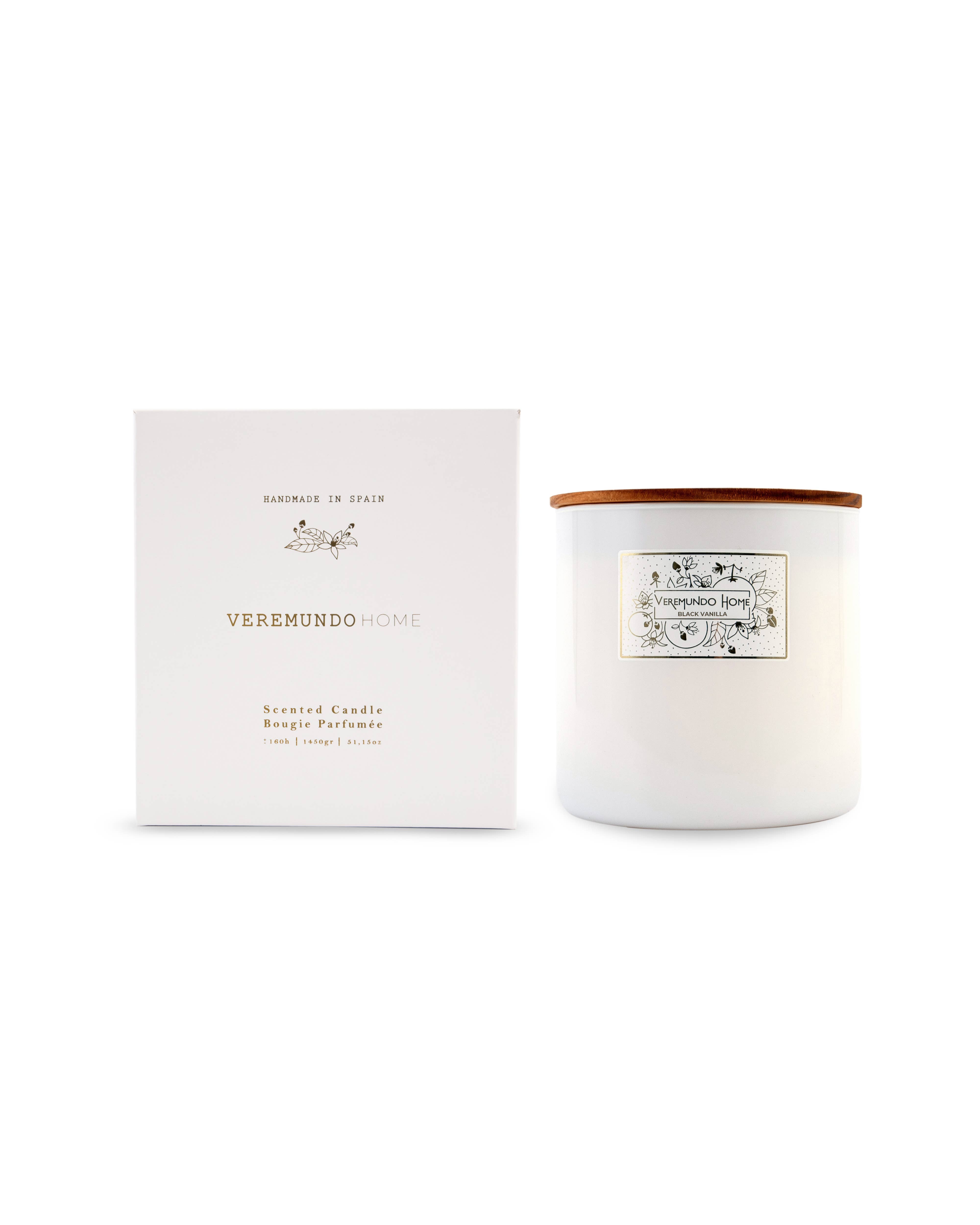 Scented Candle - 3.450gr vegetable wax - Black lacquered glass - Wood Lid 20CM - H28CM - Duration approx 220H - Wicks. 4 Product handmade in Spain
