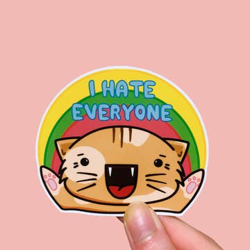 I Hate Everyone Rainbow Cat Vinyl Sticker, funny meme,
