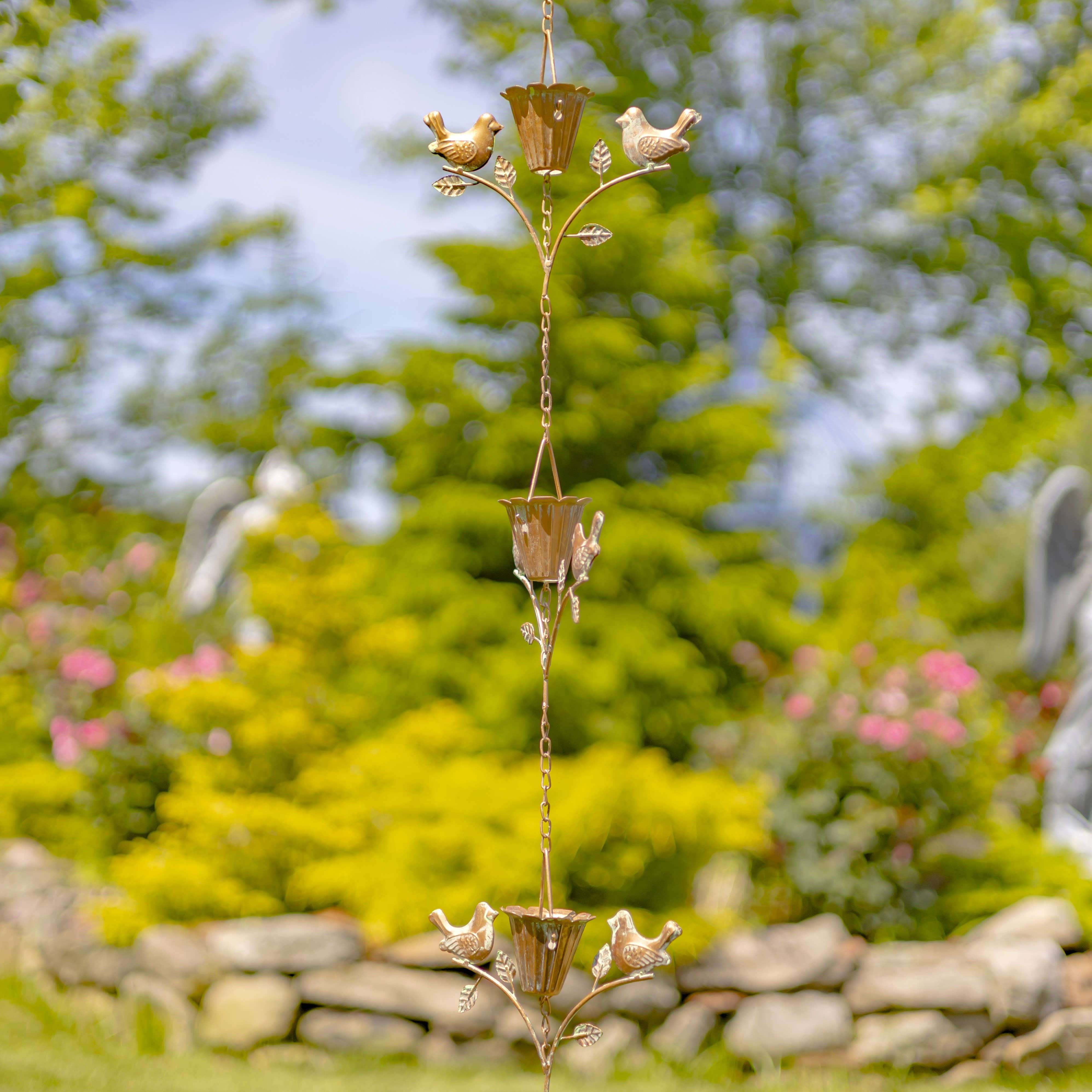 Rain chains are the must-have trending product when it comes to home and garden decor this season. Our iron crafted rain chains are as functional as they are beautiful. Each piece is skillfully crafted from high quality metal and powder coated for extra protection against outdoor elements. Their hand painted Antique Bronze brush-stroke finish makes each chain unique. Hang from your roof or patio and next time it rains, listen to the soothing sounds they emit as the water trickles down each piece. - Outdoor safe - Powder coated - Distressed, hand painted finish - Sturdy & durable - Easy to hang (bracket included) - Packaged 6pcs per carton; 1pc per inner Specifications Materials: 100% iron Item Weight: 1.76lbs CBM: 0.18392 MOQ: 6pcs Finish: Antique Bronze Hardware Included: yes Type of Hardware: V-Hook Minimum: 6 Increment: 6 Dimensions: 5.75" L x 5.75" W x 75.98" H