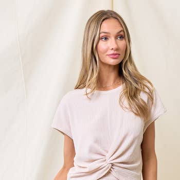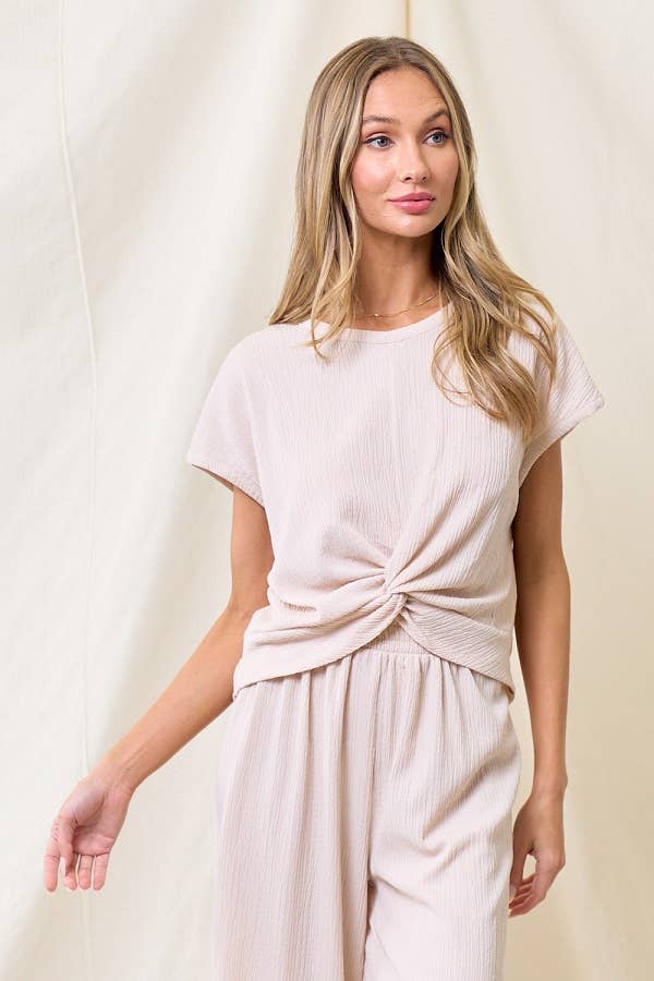 COTTON MESH GRID SHORT SLEEVE TOP (12686/154109-CAMEL)