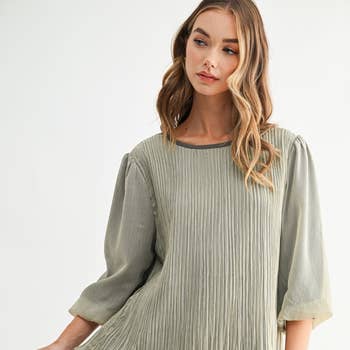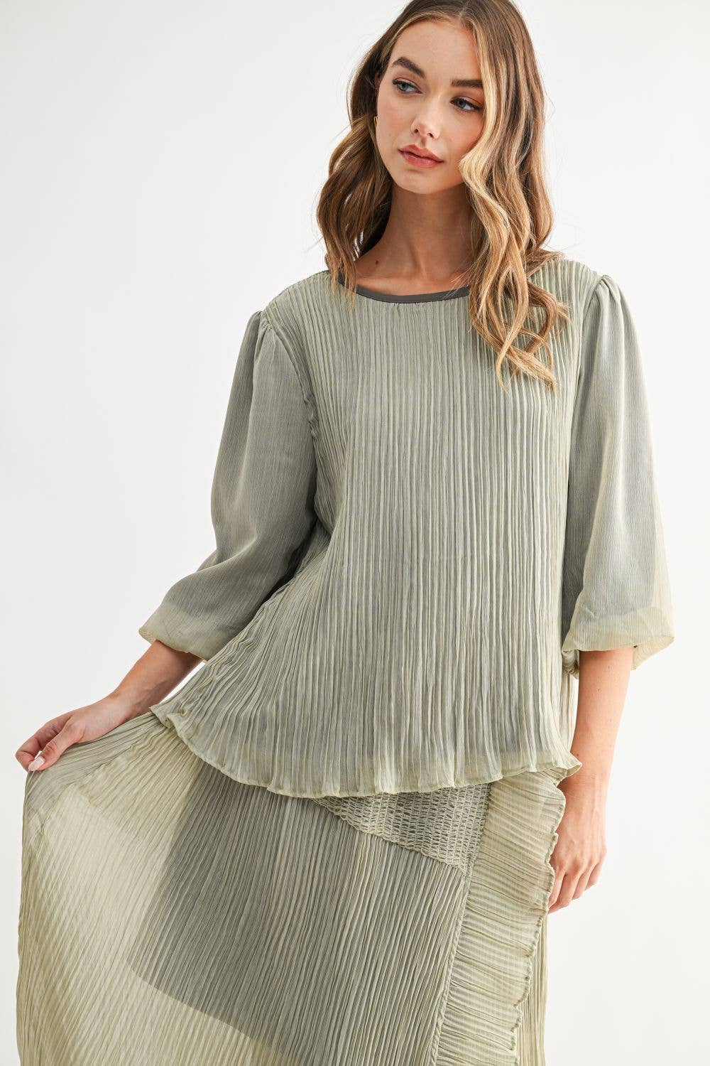LINEN DOUBLE LAYERED TOP (11761/154111-ARMY GREEN)