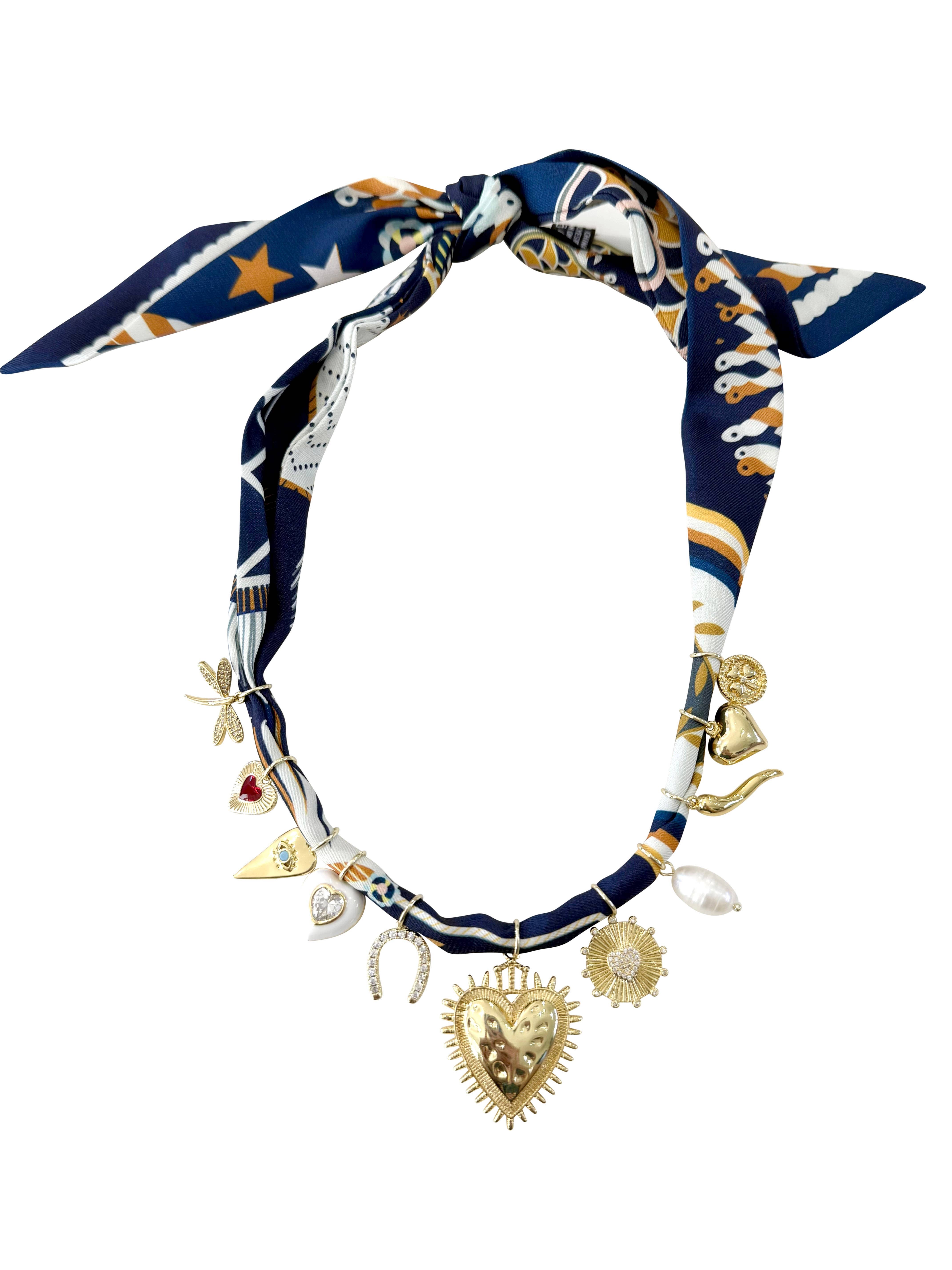 Navy and seafoam beads pair beautifully with a soft scarf for a cool, breezy look. Finished with a chain, this necklace adds a touch of coastal-inspired elegance. DETAILS 5" Inner diameter