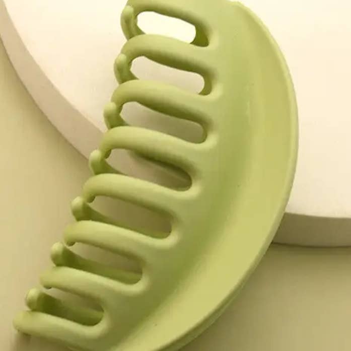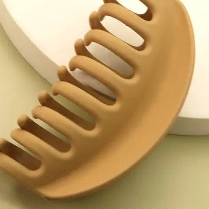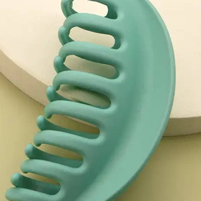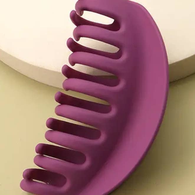 Premium extra large curved oversized hair claw. Designed to hold the hair in place, soft grips no ouch, excellent quality great for thin hair to thick hair. DIMENSION Width: 5.5" length: 3"