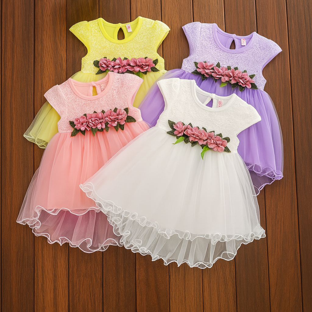 Size: 3-6 Months, 6-12 Months, 12-18 Months, 18-24 Months Color: Lilac, Yellow, Pink, White Material: 65% Cotton, 35% Polyester Care: Hand wash