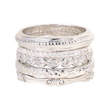 SKU: ZRJ9008-05 Made in United States Color: Silver Is Set: Individual Material: Stainless Steel Size: 5, 6, 7, 8, 9, 10, 11 Stone Type: Cubic Zirconia Style: Glam Product Language: English Weight: 6.1 g (0.22 oz) UPC: 196944079155