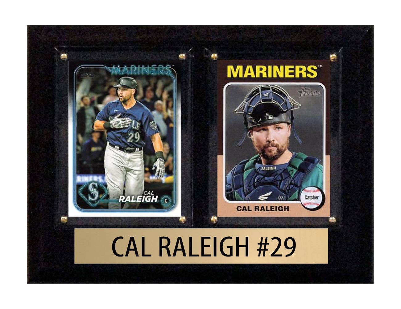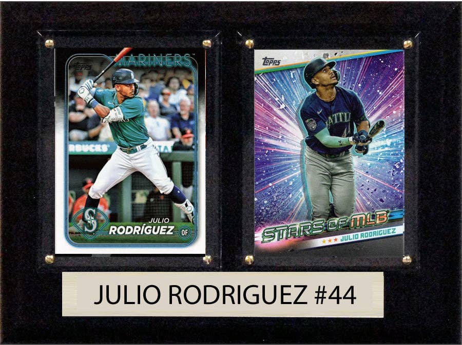 Add the stars and legends of MLB to your man cave. * Engraved nameplate * High-clarity acrylic covering * Includes three licensed trading cards from Topps Bowman Fleer Donruss & others * Measures approximately 8'' x 10'' * Made in the USA * Actual cards may vary from images shown The plaque will include 3 cards of the player shown but they may not be the exact same years/style of card