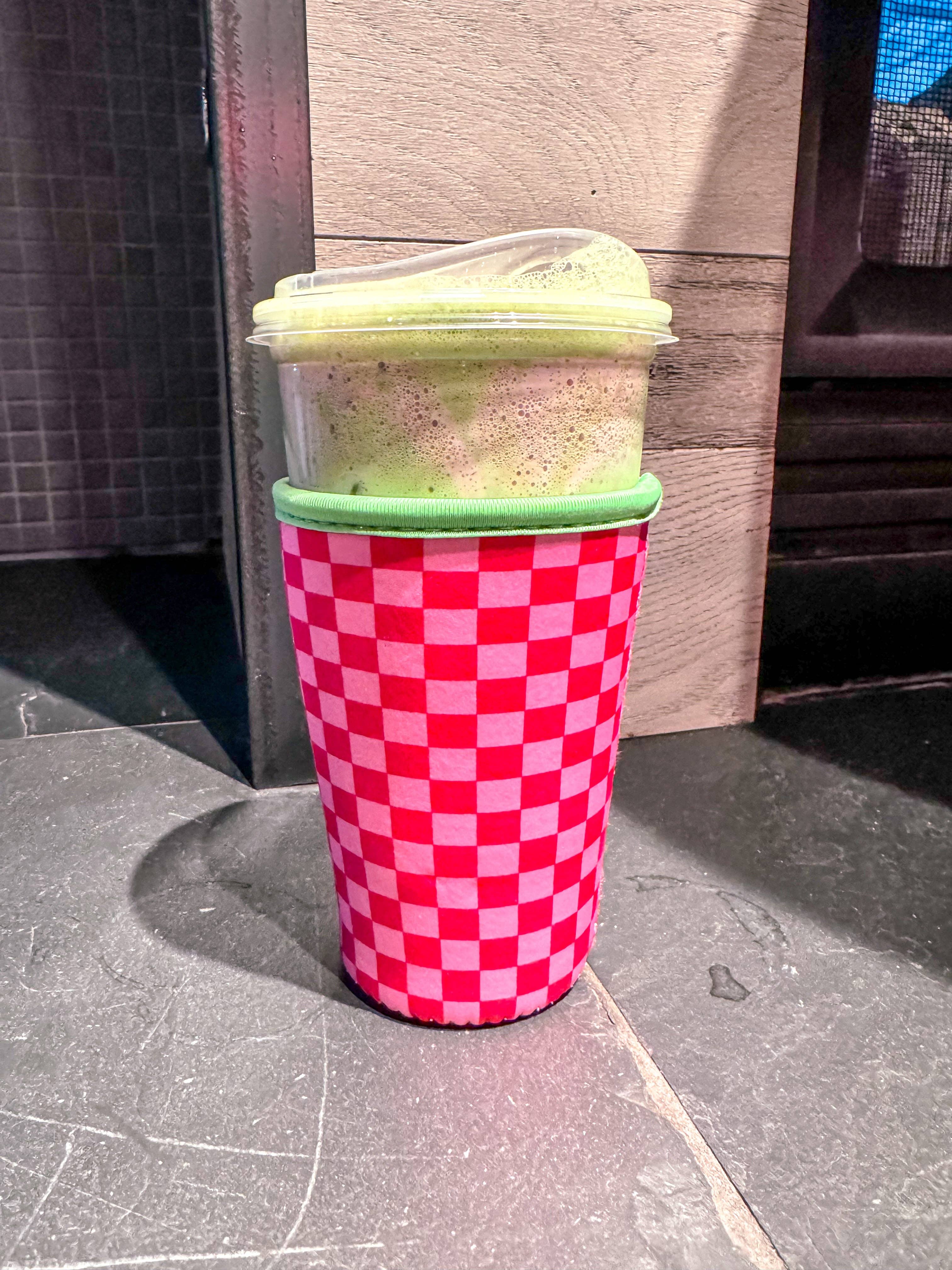 Pink/Green Checked Drink Sleeve