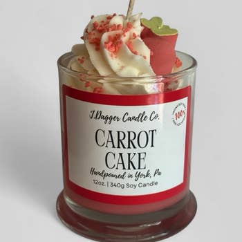 Highly scented with the amazing aroma of Pumpkin Pie. Handmade candle with a Paraffin/Soy Blend, whipped wax cream and sprinkled with glitter. The pie contains three wicks in a pie pan. Each pie will come packaged in a pie box. Pies are in a 5-inch pie tin, each pie weighs 9 oz