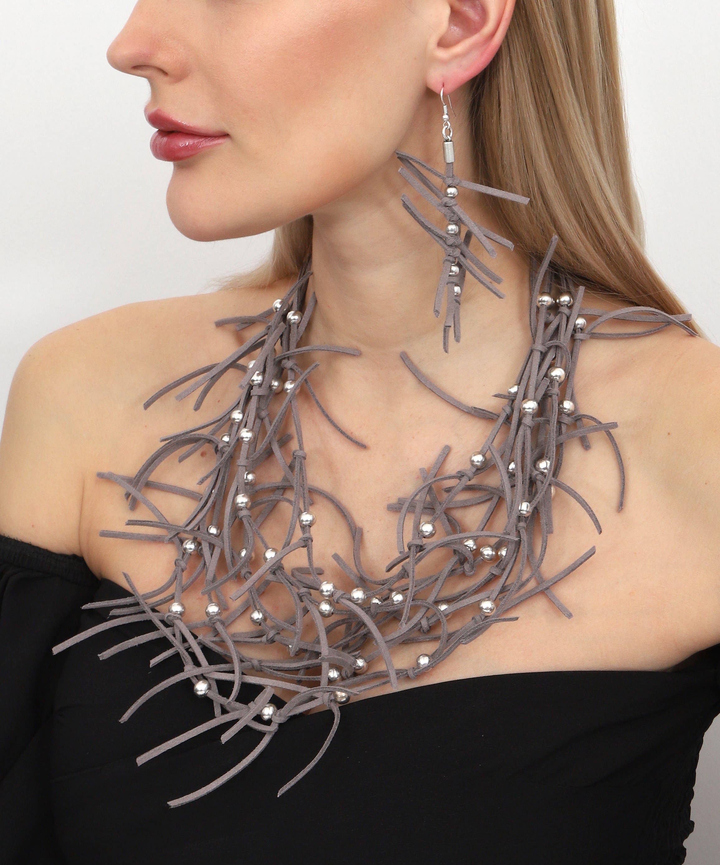 ► Handmade Leather Leaf Women Necklace and Earrings Set. Special Casual Design.. ► Material : Leather ► Best Option for Halloween Party & Festivals. Necklace | L : 20,22" Earrings | W : 1,56" | W : 0,90" ► Leather Lined Leaf Design Jewelry Set ► Natural Ethnic Hand Crafted ► Fashion Jewelry gift for Women ► Hypoallergenic ► Lead, Nickel, Cadmium free.Hand made leather necklace.