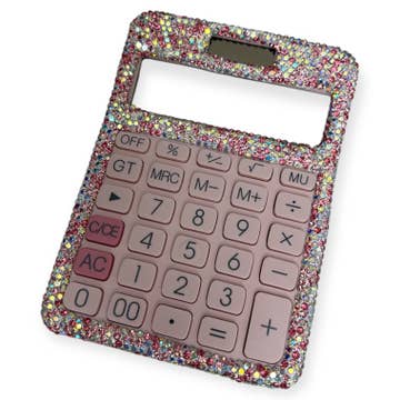 Size : 3.75" X 7.5" X 1" 1 AA Battery Needed / Battery Not Included Stylish desktop calculator featuring round, oversized keys and a sparkling, gem-studded frame. Combines eye-catching design with practical functionality, making it perfect for adding flair to your workspace while handling everyday math tasks with ease.