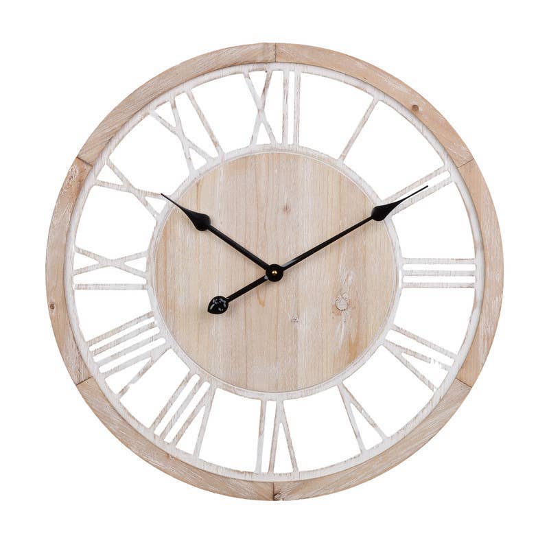HomeRoots - Wholesale Wall Clock - 24" Brown Solid Wood Silent Analog Round Wall Clock