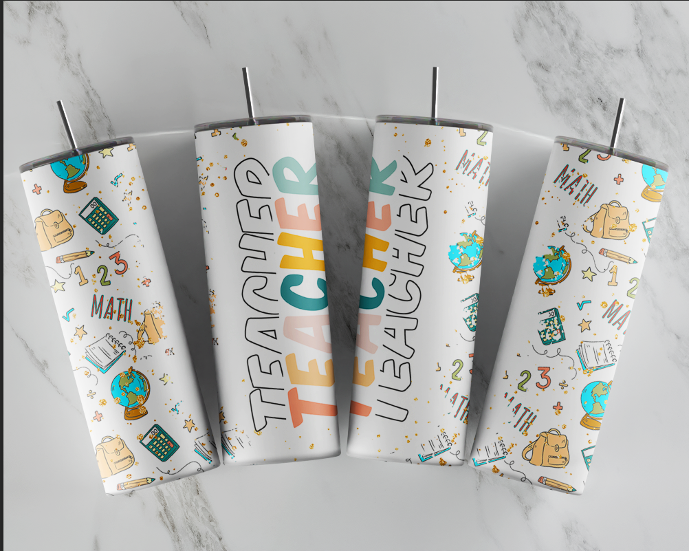 Our stainless steel tumblers are sublimated on 20oz skinny tumblers and come with reusable plastic straw. Since each tumbler is made to order, no 2 will be identical. These will not peel or fade.