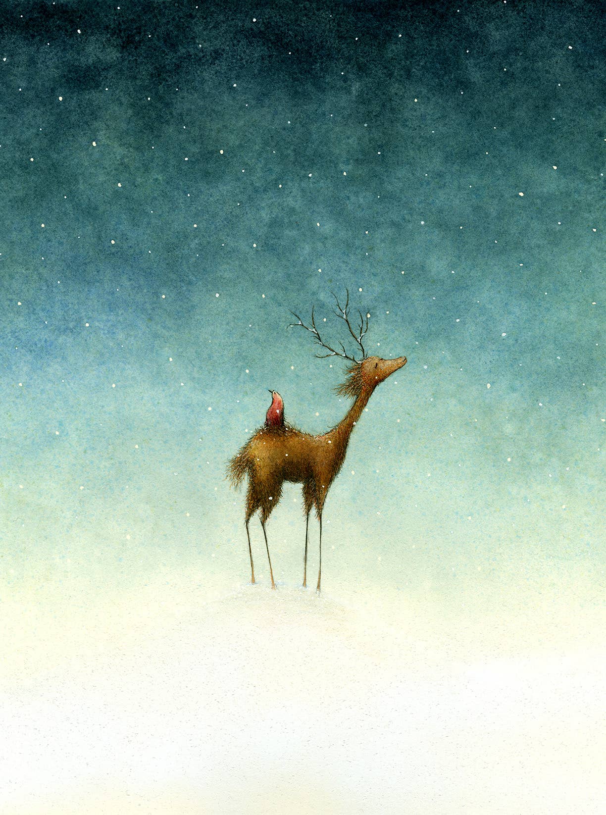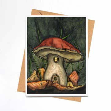 This is a 4.25" X 5.5" fine art note card of one of my watercolor, charcoal, pastel and ink illustrations. Each card is printed on sustainable forest 110# DigiSatin cover card stock with soy-based inks and is blank on the inside. Cards are beautifully packaged in clear poly sleeves with A-2 sized envelopes.