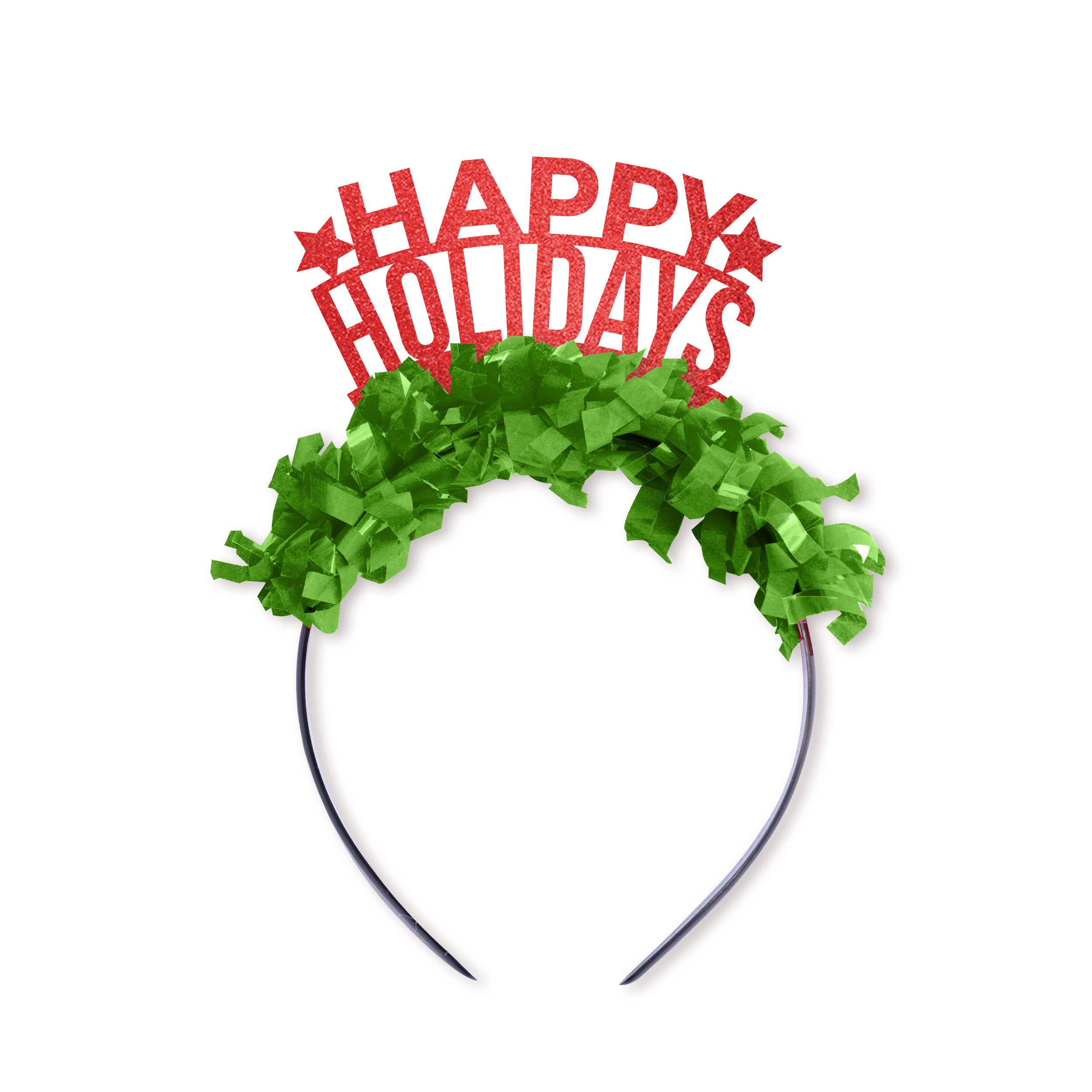 Perfect for Christmas holiday gifts and party decor! This headband is the ultimate accessory for Ugly Christmas Sweater parties this holiday season. Let your love for the holidays be known while wearing this festive party crown. All crown designs vary in height due to the different sayings, but most crowns are 6 inches wide, and anywhere from 2- 4 inches tall. The sayings are cut out of heavyweight premium card stock, and the glitter card stock has minimal to no glitter shedding. The plastic headbands are black and flexible, and fit almost every head whether child or adult. The fringe is made out of colorful fluffy tissue paper.
