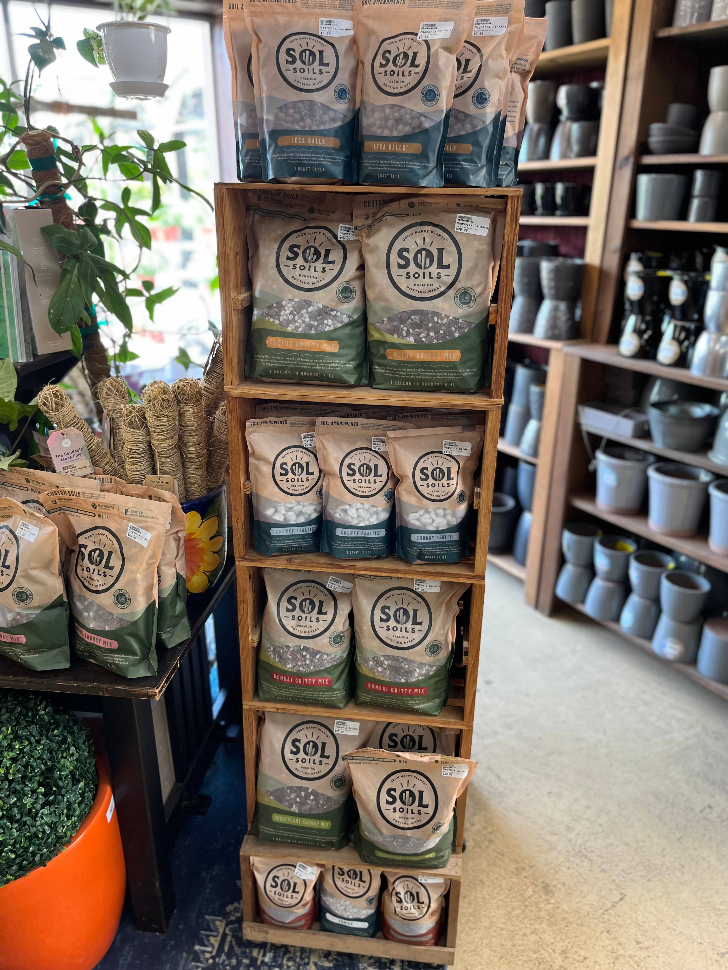 Sol Soils offers a variety of high-quality, gritty mix soils, soil amendments, and decorative soil toppers designed for the full spectrum of potted plants that may be in your collection. We select and hand-mix the best ingredients to produce fast draining soils that help protect against root rot, the number one killer of indoor plants. Cactus Gritty Mix is the mix that started it all! This puts a more eco-friendly spin on the traditional gritty cactus soil by utilizing coconut chips and coir, an otherwise wasted byproduct of the coconut industry. Of the 50 million coconuts produced around the world each year, about 85% of the husks are discarded as trash.