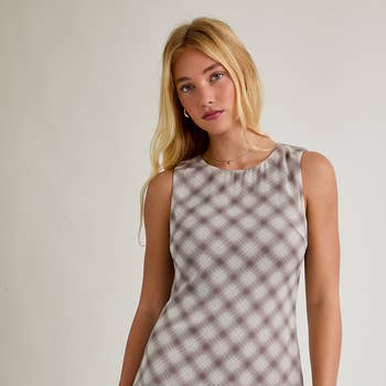 SKU: DI9935FO, DI9935FO, DI9935FO Made in China Aesthetic: Classic and Preppy Dress Style: Sundress Neckline: Round neck Occasion: Day Party and Wedding Guest Pattern: Plaid Season: Spring/Summer Skirt & Dress Length: Mini Sleeve Length: Sleeveless Fabric: SELF:100% POLYESTER LINING:95%POLYESTER, 5% SPANDEX