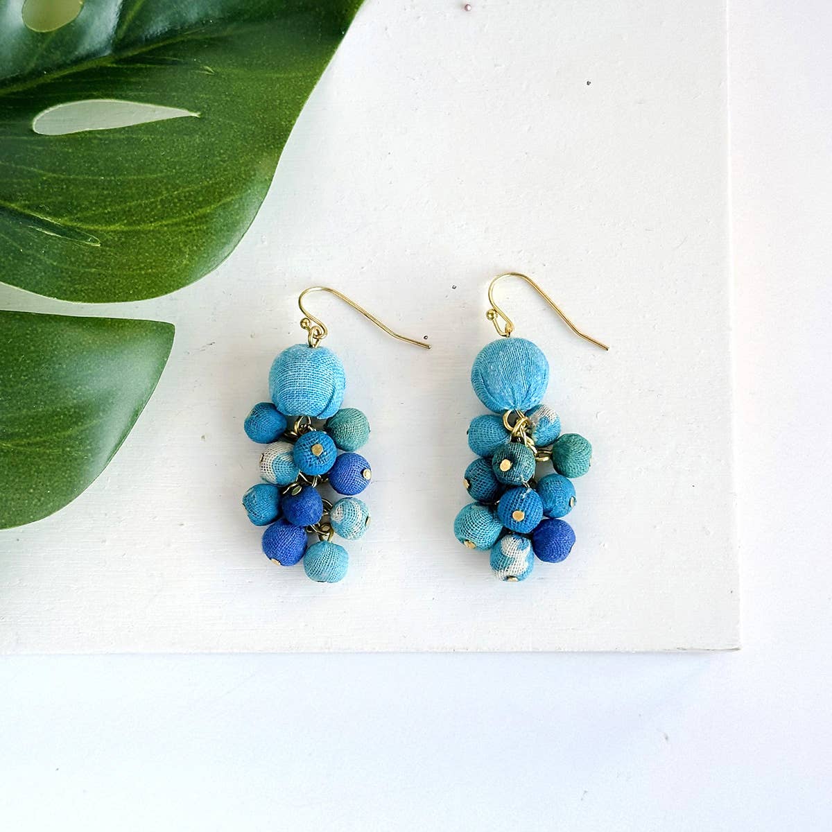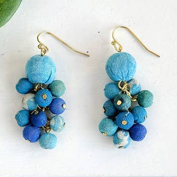 Look out for these fabric-wrapped earrings in cobalt! These make a statement with any outfit. Try this bold blue with neutrals or other brights.