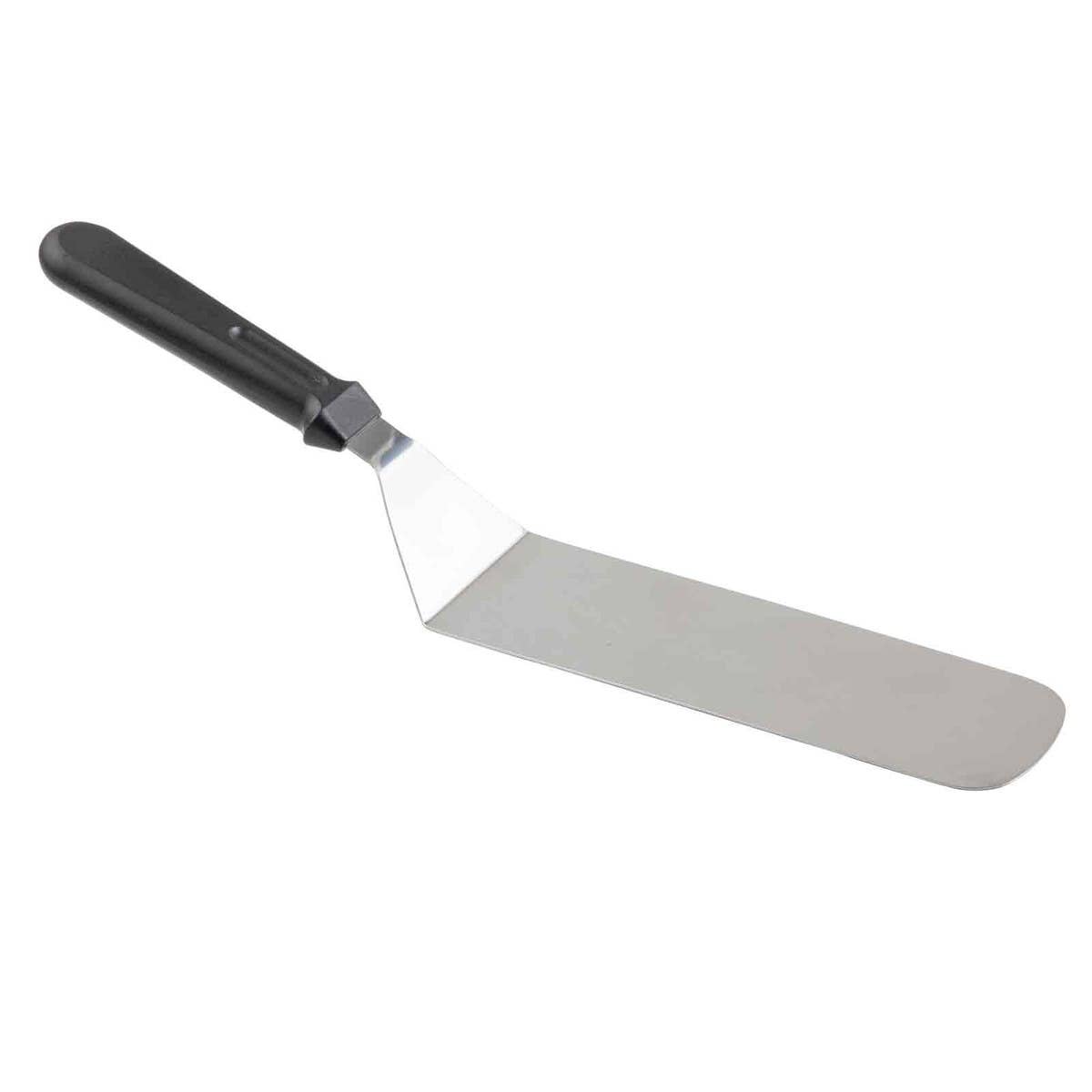 Whether you need it for flipping burgers, constructing cakes, or making an omelet, a reliable turner is a necessary component in any kitchen. Featuring a 7", rounded end blade, this turner has a white plastic handle that meets food safety standards and is easy to clean.