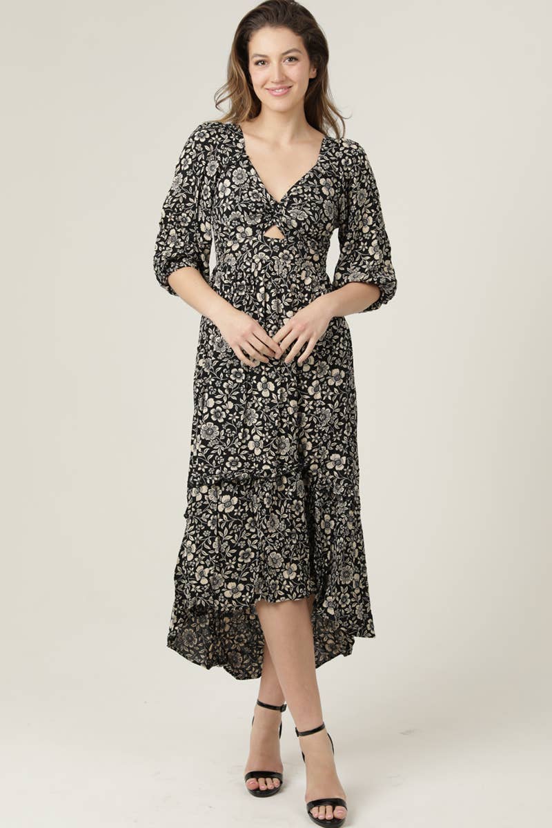 ABSTRACT TULIP SLEEVE MIDI DRESS / WL24-9931
