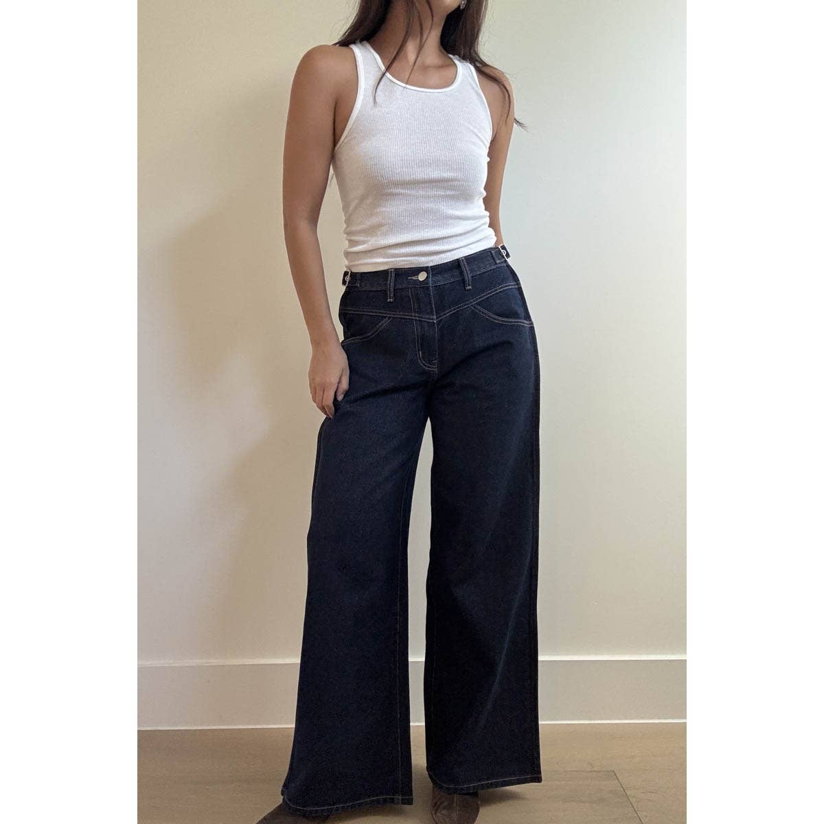 Cotton Spandex Blend Wide Leg Denim