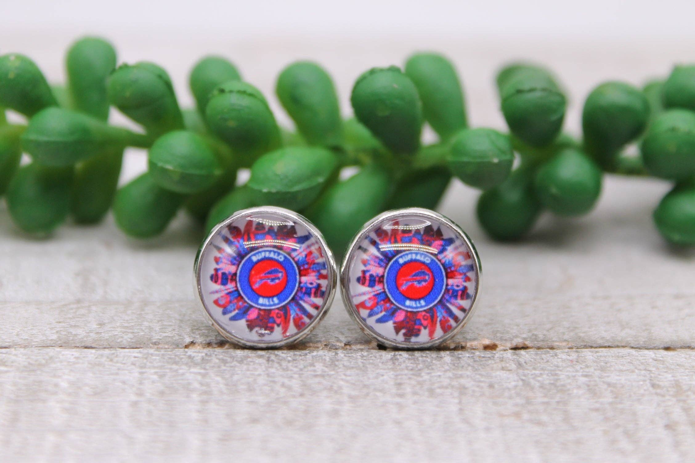 Wholesale Buffalo Bills Football & Player || 12mm Glass Stud Earrings || Hypoallergenic