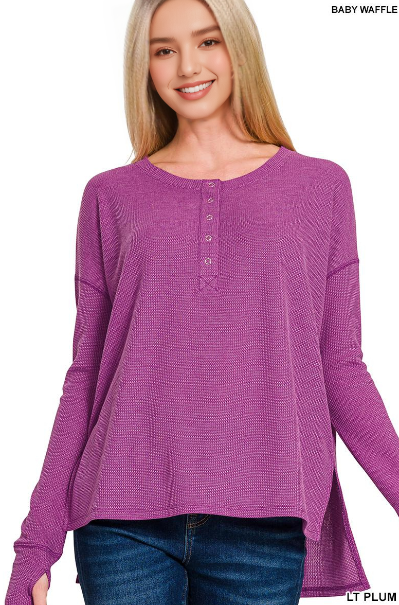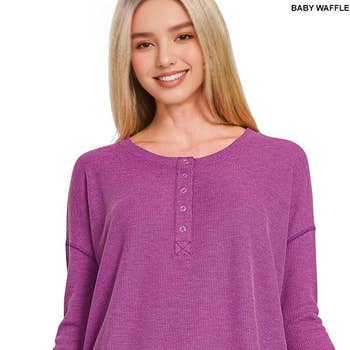 Plus Size Solid TR Spandex Long Sleeve Top With Button Down Detail, Fabric is Made in Korea