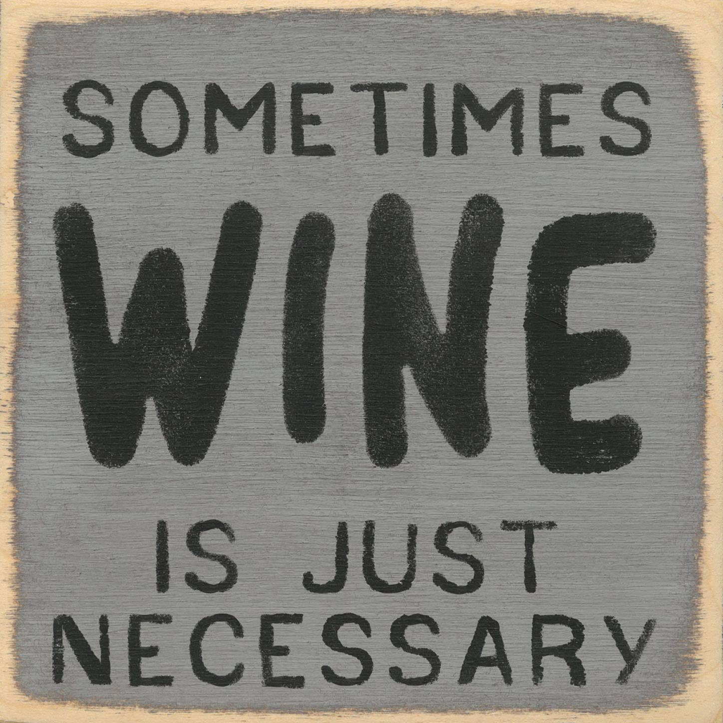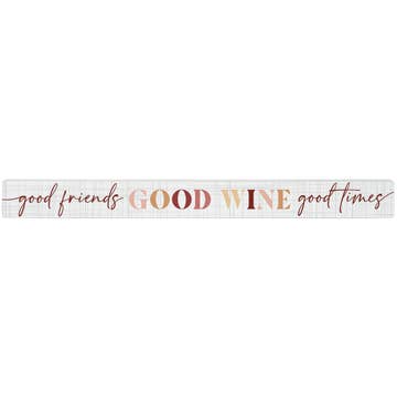 This framed sign has a playful, white lettering design that reads, "Gather Give Thanks Drink Wine" on a green background. The frame has a natural wood finish and there a sawtooth on the back for optional hanging display. Makes a unique addition to a Thanksgiving or Harvest collection. Measures 6.25" square and 1" deep.