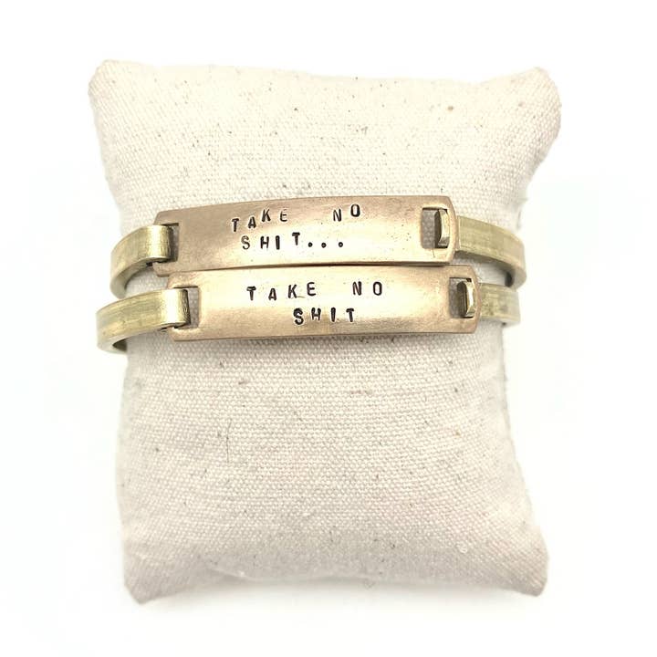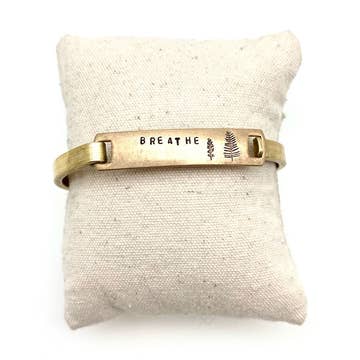 "Breathe" Stamped Clip-Cuff Brass Bracelet