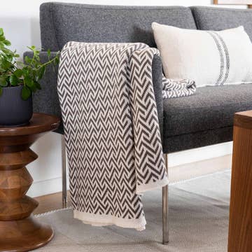 Dublin Alpaca Wool Throw - Grey with Ivory Stripes