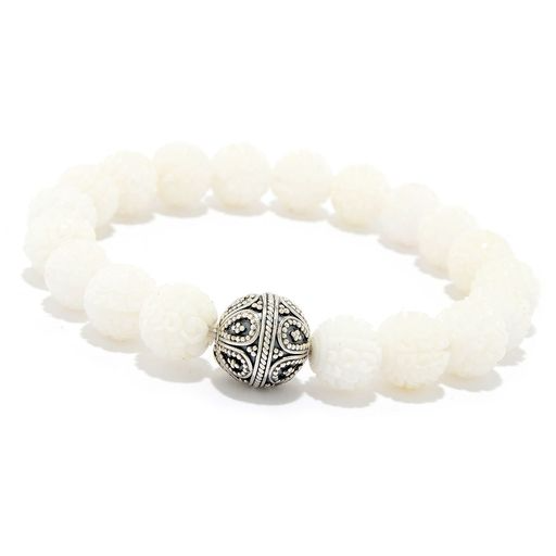 SKU: 900-90922 Made in China Color: Black, Grey, Multi-Colored, Off-White, Silver, and White Is Set: Individual Material: Stone Occasion: Birthday and Everyday Stone Type: Hematite and Howlite Style: Classic and Fashion-Forward Theme: Religion & Spirituality Product Language: English Weight: 20 g (0.71 oz)