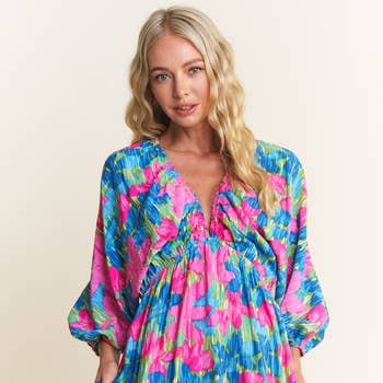 Turn up the heat in our Marilda pistachio green and pink swirl dress. With its playful bell sleeves, this resort dress exudes bohemian vibes. Made from textured cotton for a beachy look, it also features fun tassel and pom pom details at the v-neck. Style No. Marilda S25-168MIN-A-BSV2 Details & Care: Cotton Machine wash cold. Air dry recommended.. Measurements for size M: Bust (circumference): 46 in (116.84 cm) Length (from shoulder): 38 in (96.52 cm) Model measurements: Katie wears size M Height: 5ft. 11 in (177.8 m) Bust (circumference): 33 in (83.82 cm) Waist (circumference): 27 in (68 cm) Hips (circumference): 38 in (96.52 cm)