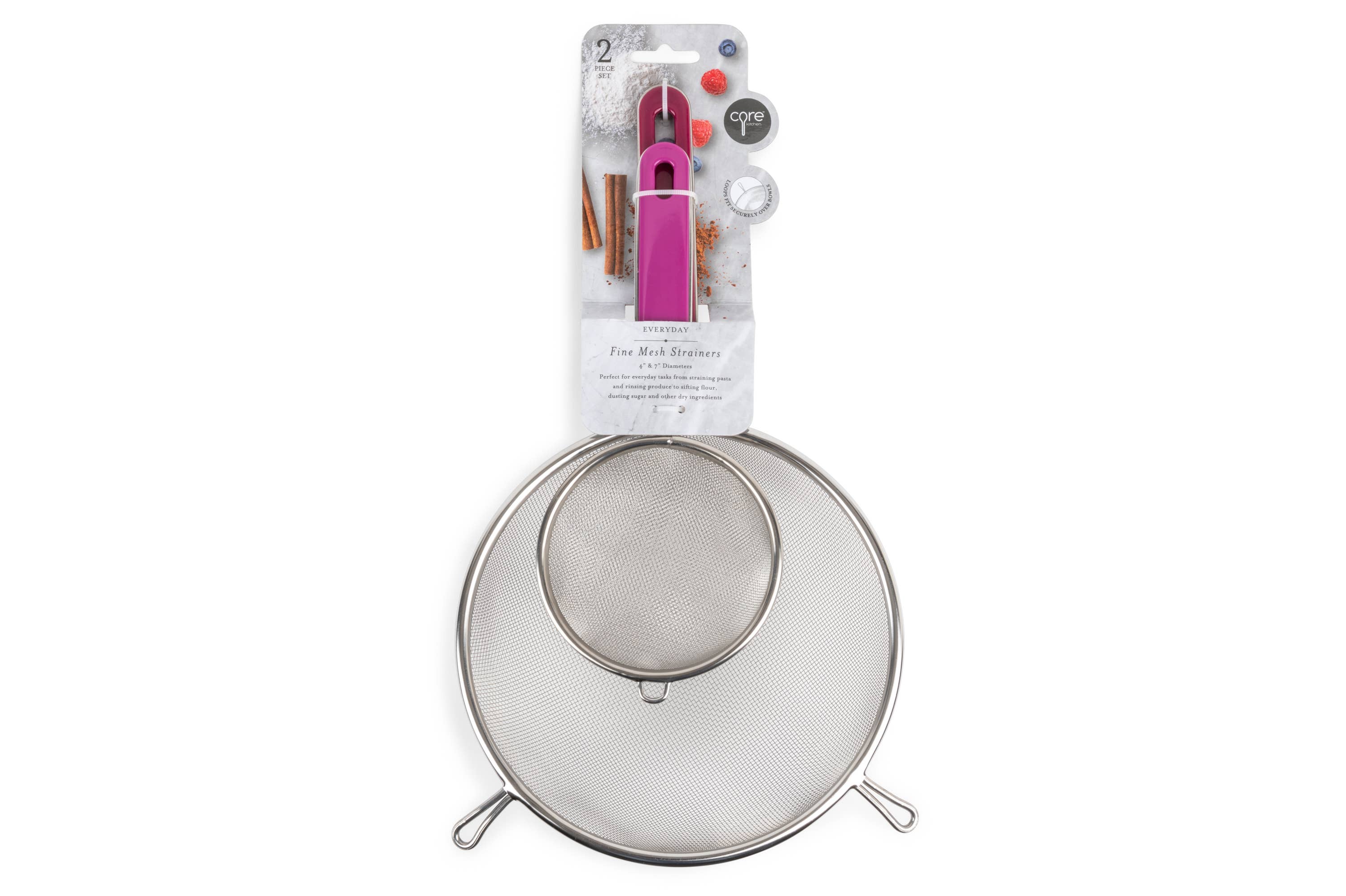 A fun way to catch food while letting water down the drain. Made to fit most standard kitchen sinks. Comes in a carded package, long lasting construction.