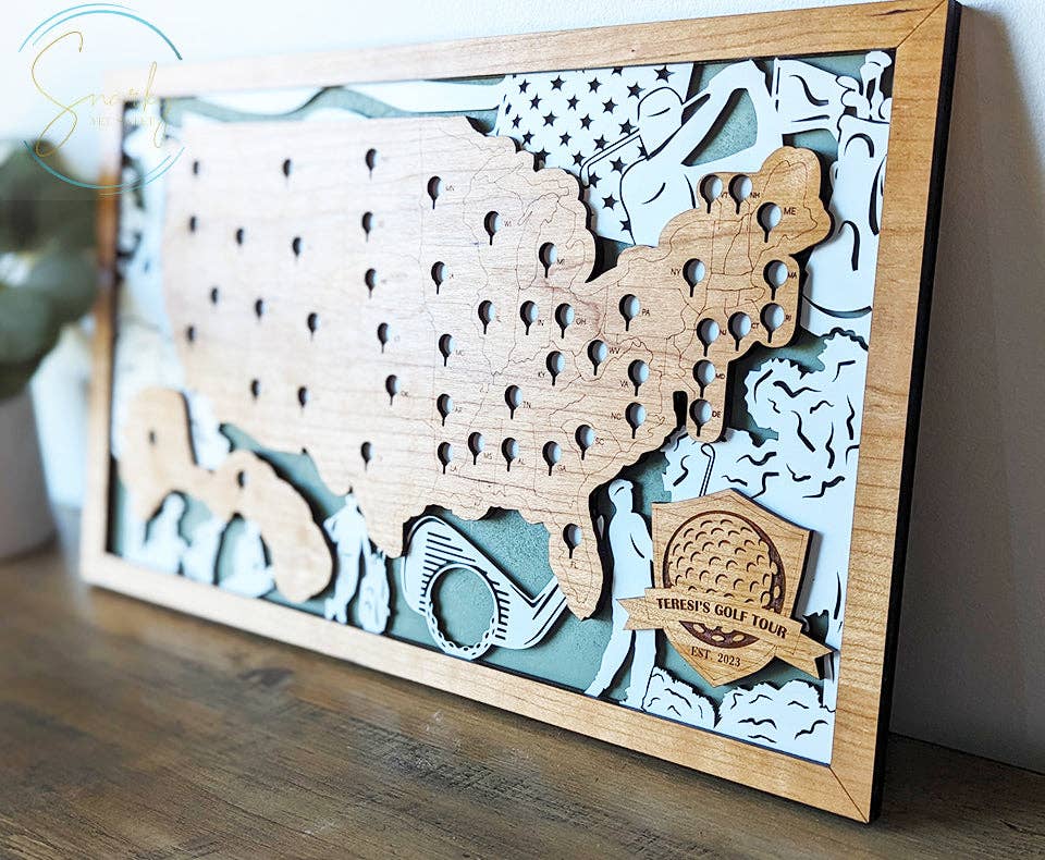 TRACK ALL YOUR STATE PARK ADVENTURES IN ONE BEAUTIFUL DISPLAY Transform your Wisconsin explorations into a beautiful keepsake! Our handcrafted Wisconsin State Parks Map Tracker lets you document every state park visit while creating an eye-catching conversation piece that showcases your outdoor adventures. This map was designed by Scott, one half of Snarky Yet Sweet. This map is ONLY available to purchase here! PREMIUM QUALITY CRAFTSMANSHIP Precision laser-cut from three layers of premium wood: • Cherry wood map of Wisconsin featuring all 50 State Parks, a map key featuring your personalized name or phrase, and a cherry frame. Finished with a protective coating to ensure lasting beauty for years of adventure tracking • Hand painted Baltic birch background featuring detailed Wisconsin state park iconography and natural landscape elements • Sturdy backing of 1/4 inch MDF with attached sawtooth hangers, ready for hanging Includes matching numbered green wooden trees, one for each park, to track your visits. Full sets of replacement pieces available to purchase. CUSTOMIZATION OPTIONS • Personalized name plate with your family name or custom message. • Available in multiple sizes to fit any wall space: 11x18", 16x26", and 20x34". HOW TO USE YOUR WISCONSIN PARKS TRACKER 1. Plan your next Wisconsin Park adventure. 2. Upon visiting a park, place a wooden tree marker in that location (we recommend a small dab of super glue to ensure they stay secure). 3. Watch your Personalized Wisconsin Parks Map fill with memories as you explore more parks. 4. Use it as a planning tool for future adventures and a record of your local outdoor journeys. THE PERFECT GIFT FOR WISCONSIN OUTDOOR ENTHUSIASTS • Birthday gift for hikers and nature lovers (a meaningful present that encourages outdoor exploration). • Wedding Anniversary (especially 5th anniversaries - traditionally celebrated with wood gifts!). • Retirement gift (ideal for those planning to explore their home state). • Christmas or other holiday gift (inspire local adventures). • Housewarming gift for new Wisconsin residents (help them discover their new home state). START YOUR COLLECTION OF ADVENTURE MAPS We offer many additional specialty maps, perfect for memorializing your trips! • National Parks Map for tracking cross-country adventures. • Sports Stadium Maps for the sports enthusiast in your life. • Specialty Maps (Haunted Locations, Cryptids, High Points) to track unique traveling adventures. • Milestone Maps showing where you met, married, and honeymooned - perfect for anniversary celebrations! • Adjacent state park maps for regional explorers. PROUDLY HANDMADE IN ILLINOIS Each Wisconsin Parks Travel Display is handcrafted by our family-owned business in Woodstock, IL. When you purchase from Snarky Yet Sweet, you're supporting a small business dedicated to quality craftsmanship and personal service. We appreciate you!