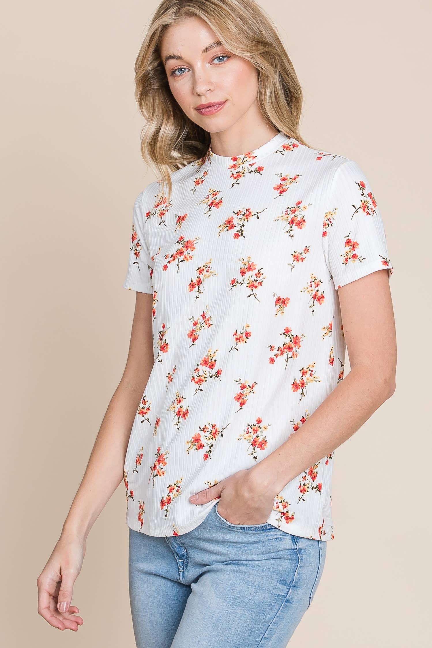 TA1806 FLORAL MOCK NECK TEE