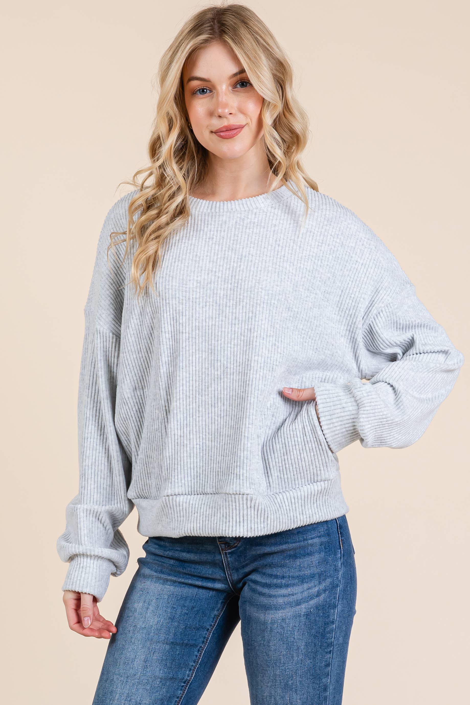 Experience elevated comfort with this dolman sleeve top, crafted from a silky soft knit fabric. Featuring a relaxed silhouette, wide neckline, and tapered hem, it drapes beautifully for a flattering and effortless look. Perfect for casual days or easy layering. 95% Polyester 5% Spandex Size S(2) - M(2) - L(2) - XL(2) Model is 5'8" and wearing size S Made in USA