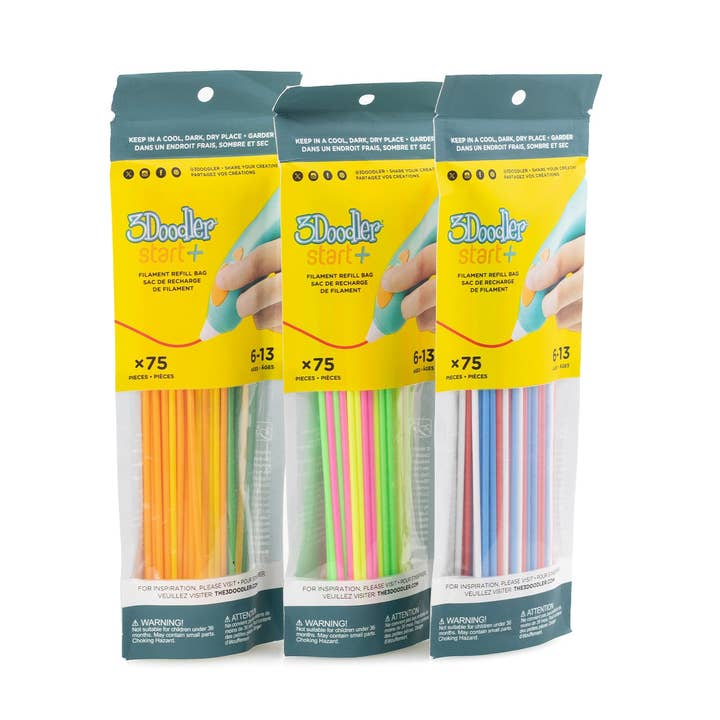 Doodle in the air with the award-winning original 3D printing pen for kids. The 3Doodler Start+ 3D Printing Pen Essentials Set combines creativity and technology in a fun and engaging way. Young learners ages 6–13 will thrive when they experience what it’s like to use their hands and minds as they bring their ideas to life in 3D! The Start+ Essentials Pen Set is designed with no external hot parts. With the press of a button, eco-friendly filament extrudes and hardens rapidly allowing kids to literally create anything! The updated design has a more comfortable grip, quicker start time, longer battery life, and a dedicated reverse button and removable hatch to help with changing filament colors.