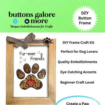 Celebrate the pets who've filled your heart and home with our rustic DIY pet family tree kit, a meaningful keepsake for animal-loving families! Each kit comes with a USA laser-cut wood family tree, a rustic-inspired galvanized bucket, 20 round wood embellishments for names, 2 stamped paw-themed rounds, 5 wood bones, 3 wood cats, rustic twine, dual-tip black sharpie, foam insert, and spanish moss. You'll also receive a log round with a Paw Heart stamp and magnet to easily display on your bucket to complete the look! A great gift for someone who loves fur babies or crafting. It's also a great family project for kids too! Requires glue (Not included). Comes boxed with Paw Heart medallion. Handcrafted and assembled with care in North Carolina. Assembled Size: 12"X15" Material: Mixed Media SAMPLE DISPLAY AVAILABLE - Purchase a tester to receive a fully completed sample kit assembled for your store