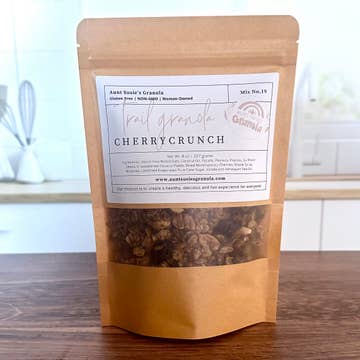 Now available in a 2oz post-consumer plastic bag! Perfect for traveling, camping, AND snacking! It's THE grab-and-go snack! An elegant take on the classic granola. This subtly-sweet blend marries the organic flavors of pistachios, tart cherries, coconut, and antioxidant-rich cardamom with nourishing sesame, chia and golden flax seeds and gluten free, fiber-packed oats. The addition of real rose petals takes this one to the next level in all the right ways. This granola is a 2023 & 2024 Good Food Awards Finalist! Bon Appétit Top 10 Granolas March 2023