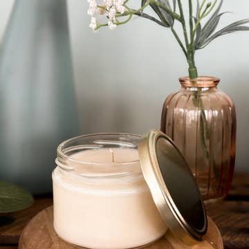 9oz AMBER jar candle, wood wick, multiple scent options