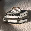 Ex Libris Enamel Lapel Pin, Approximately 1 1/2 inches Original illustration forged into a glimmering lapel pin. For the love of reading, featured on a carefully designed pinback card. A stack of books and a perfectly poured coffee; my idea of cozy contentment, call it hygge or gezelligheid.