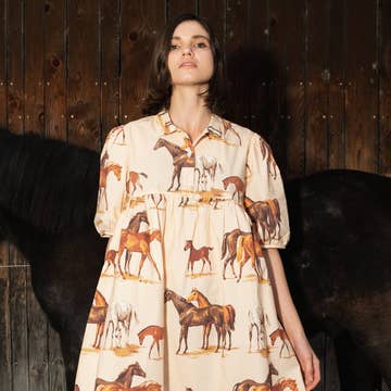 MOD Horse Sweater Dress In Black Sold in a pack of 2/2/2/1 (2XL Available Upon Request) Pack Total $182 $26 | MSRP $52 * Black with tan embroidery MOD horse head * Sleeveless * Hits just above the knee * Crew neckline * Small side slits