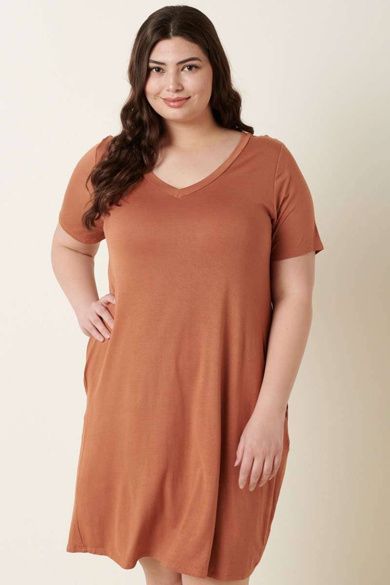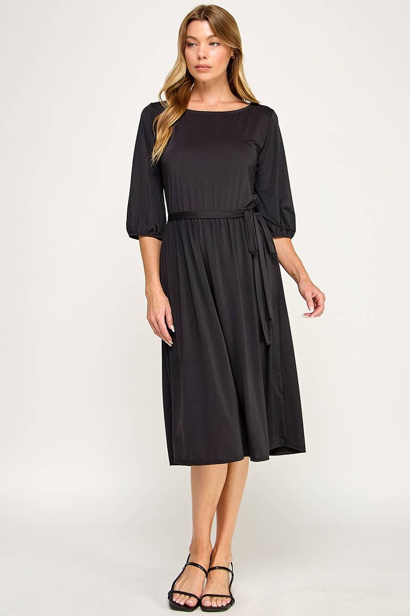 Plus Size Midi V-Neck Waist Tie Dress SS2352P-D