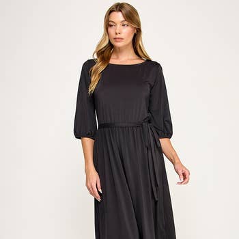 SKU: SS2352P-D Made in China Aesthetic: Casual Fabric: 100% Polyester Neckline: V-neck Occasion Theme: Everyday Occasion: Everyday and Work Pattern: Solid Season: Fall/Winter Skirt & Dress Length: Midi Sleeve Length: Short Sleeve Product Language: English Weight: 453.59 g (1 lb) Packaging: Reduced