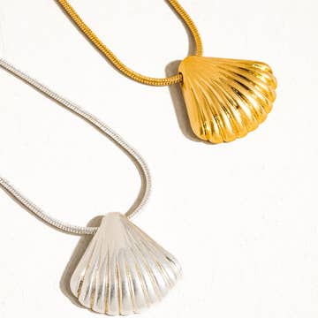 Sunrise shell with natural colors in various bright yellow tones. These shells are found on our dives off Oahu and are sized between nickel to quarter sized. Includes 18" 14k gold filled chain or Sterling Silver. Comes with Freshwater Pearl Option. All shells will vary due to natural coloration.