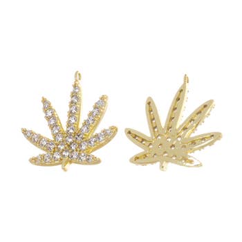 PAIR OF 316L STAINLESS STEEL HUGGIE/HOOP EARRINGS WITH GEM PAVED MARIJUANA PENDANT Thickness: 3MM Length: 9MM Material: 316L SURGICAL STEEL/Brass