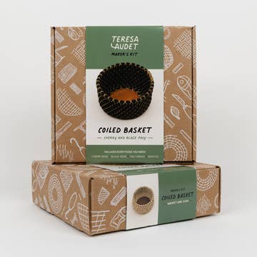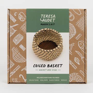 Our best selling DIY basket-making kits are now available wholesale! These coiled basket making kits have been thoughtfully developed from Teresa Audet’s fine art practice and teaching experiences. This style uses the coiling technique common with sweetgrass or pine needles, but uses rope to make the project beginner-friendly. Combining high-quality natural materials, clear step-by-step instructions, and all the necessary tools, these kits are attractive for both beginners and experienced artists. Our beautifully branded packaging is locally sourced, eco-friendly, and highlights the artisan quality and handcrafted origins of the product. This product is attractive, practical, and easy to stock on your shelves. Each kit comes with an illustrated instruction booklet, a handmade solid wooden bottom with pre-drilled holes, 1/4" black polypropylene rope, high-quality waxed thread from Maine Thread Co, and two coiling needles. Each box is 6.5” x 6.5” x 2.5”. Case size 12, half-case 6